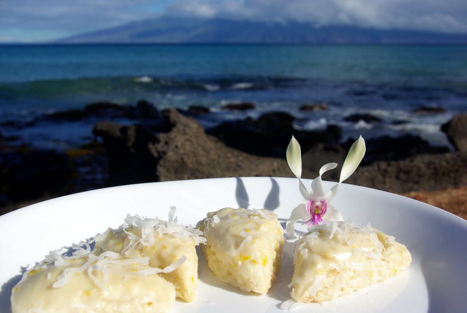While in Maui, I was inspired to make these tropical scones.  If you love lemon, then these are for you.  I ended up making 5 batches of these scones while in paradise.