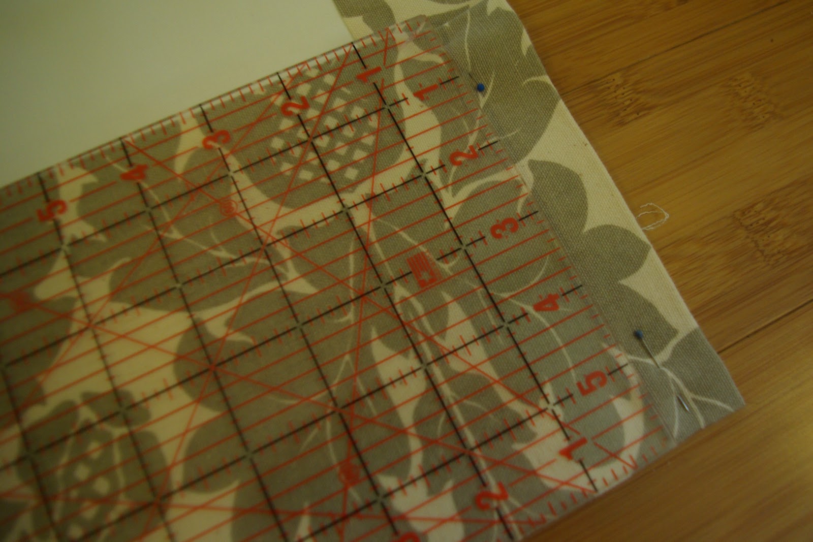 Back to the sewing machine, now you are going to hem the bottom of the shade.  Measure the length of the shade starting from the top side of the wood and then pin it to the length of the window.