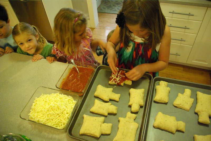 I always feel like I should serve my guests a real meal, not just cake and snacks.  Dylan loves to cook, so we each made our own Robot Shaped Pizza.  I made the pizza crusts ahead of time and then just had toppings cut and ready for the kids to top their Robot Pizzas.  I think they really enjoyed making their own lunch.