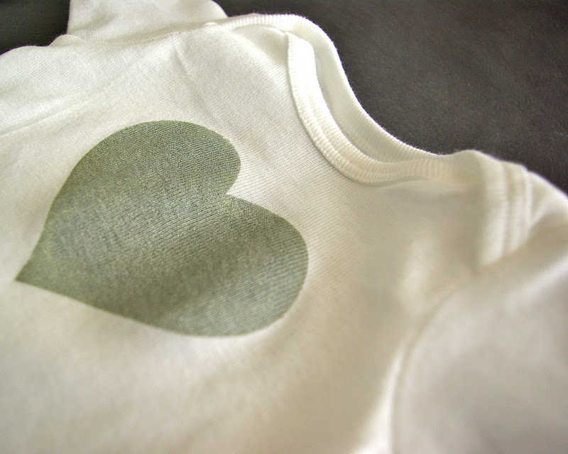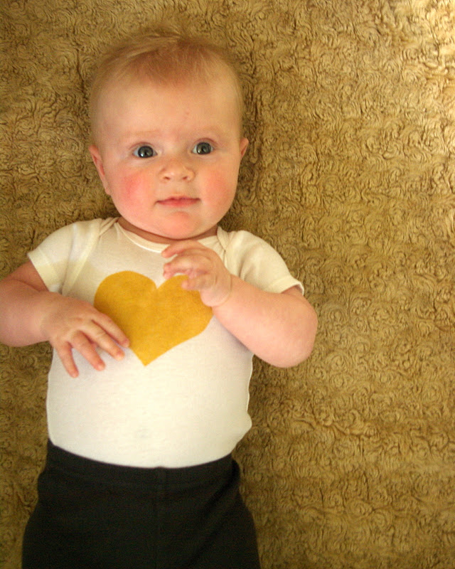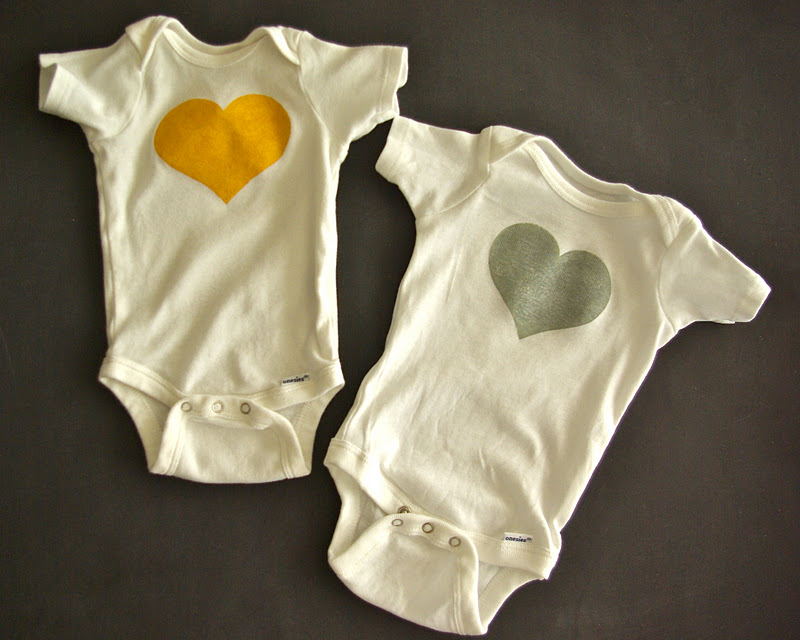 I used my favorite new trick and made a heart stencil on freezer paper and painted the shirts with a metallic gold and silver. You can read more about the technique here and here.