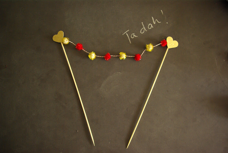 Here’s a super yummy cake and a very easy cake topper. This pom pom bunting adds a festive touch to the simplest of cakes.
