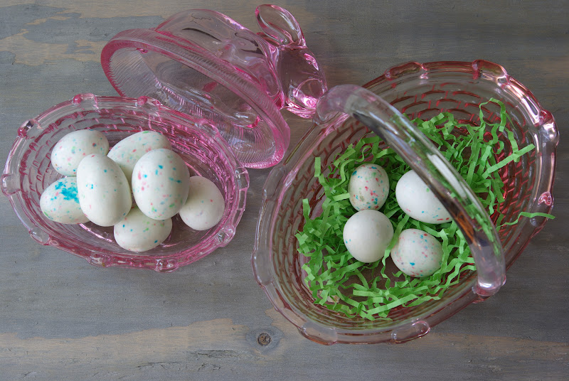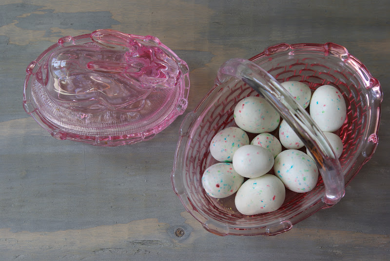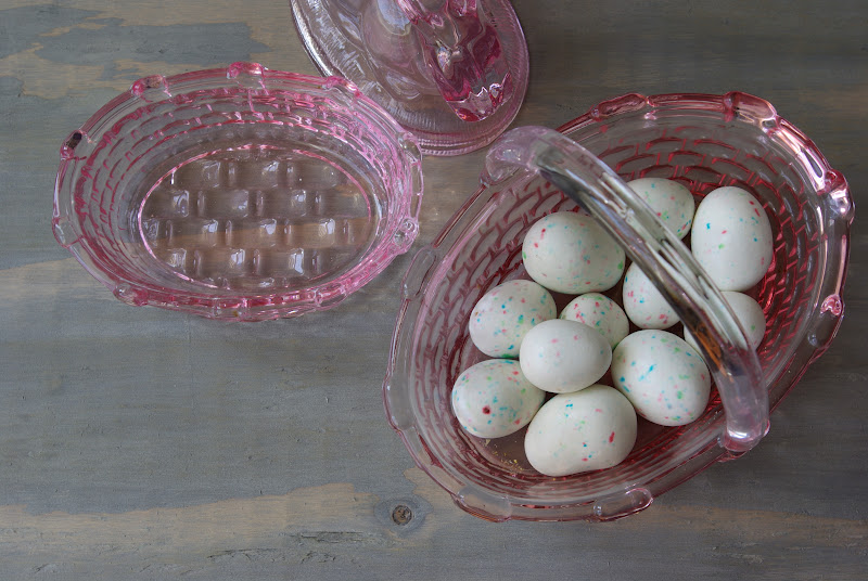 Spring is here! And I’m ready for the new beginnings that come with this season. The last couple of months have brought some trying and tough times to for the people I love. It’s time for some Pretty Pink Happy Thoughts, and I thought these pretty pink Easter dishes would help stir these emotions. Sometimes to get yourself out of a funk or find some hope, you need some distraction from what’s weighing you down. Today I did that by playing with my camera and tripod. While Olivia napped, I played. And it put me in a good mood.