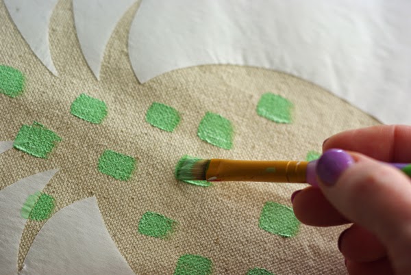 Applying one color at a time, make small brush strokes in one direction over the entire pineapple shape.